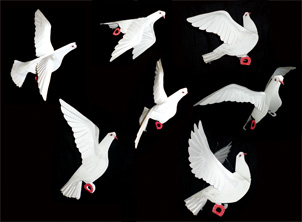 羽ばたく鳩たちと、鳥かご3点の作品を提供いたしました。